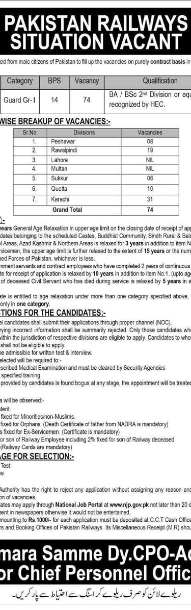 Guard Jobs in Pakistan Railways 2026