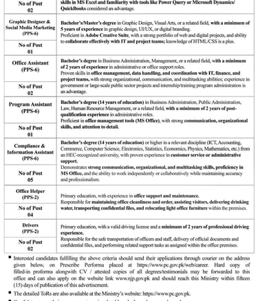 Ministry of Planning Development and Special initiatives Jobs 2026