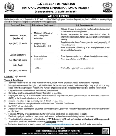 NADRA National Database and Registration Authority 2026 Jobs Gilgit Baltistan