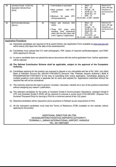 Bird Controller Shooter Jobs in Pakistan Airports Authority
