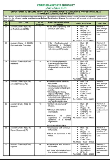 Logistics Jobs in Pakistan Airports Authority