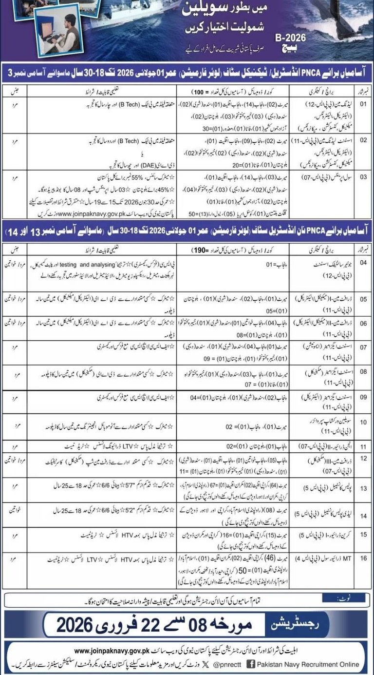 Pakistan Navy Civilian Jobs 2026 February Online Registration Join PN B-2026 Batch