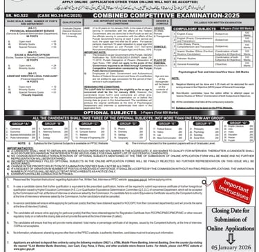 Please read the Important Instructions" regarding Application Fee, Written Test, Interview on PPSC website ww.ppsc.qop.pk before applying online.