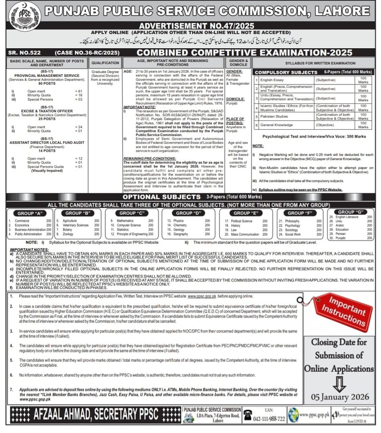 NOTE: ) Syllabus for the Optional Subjects is available on PPSC Website
