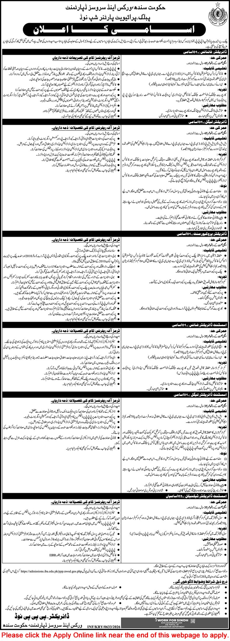 Works and Services Department Sindh Jobs 2026 February Apply Online Assistant Directors & Others